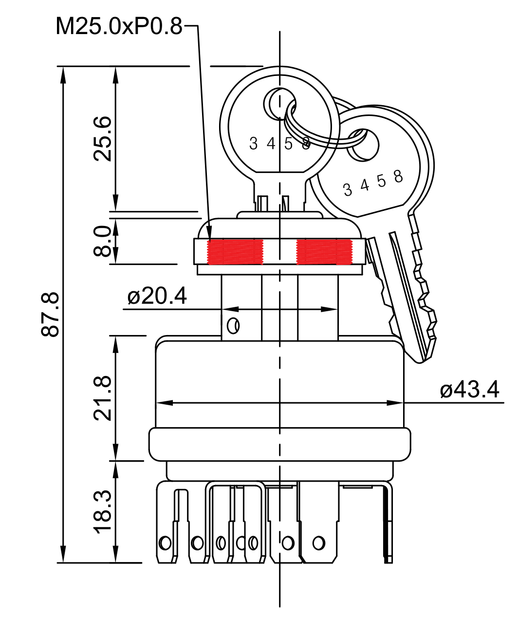 - Ignition Starter Switch with lock cylinder and Keys 4 Position ACC-Off-On-Start